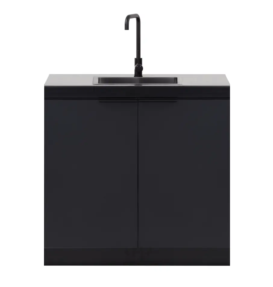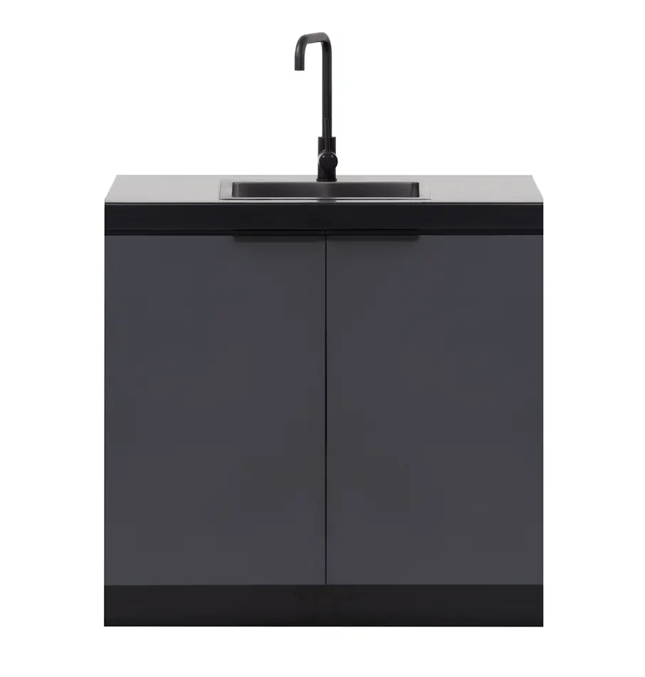 which are waterproof and won’t crack, split or rot and AlfrescoPlus™ patented aluminium frames which make assembly easy for any DIYer. All modules come with a new sintered stone benchtop and can be fitted with a choice of 3 different colour compact laminate doors. All fitted with high quality hardware, levelling legs and kicker panels.
